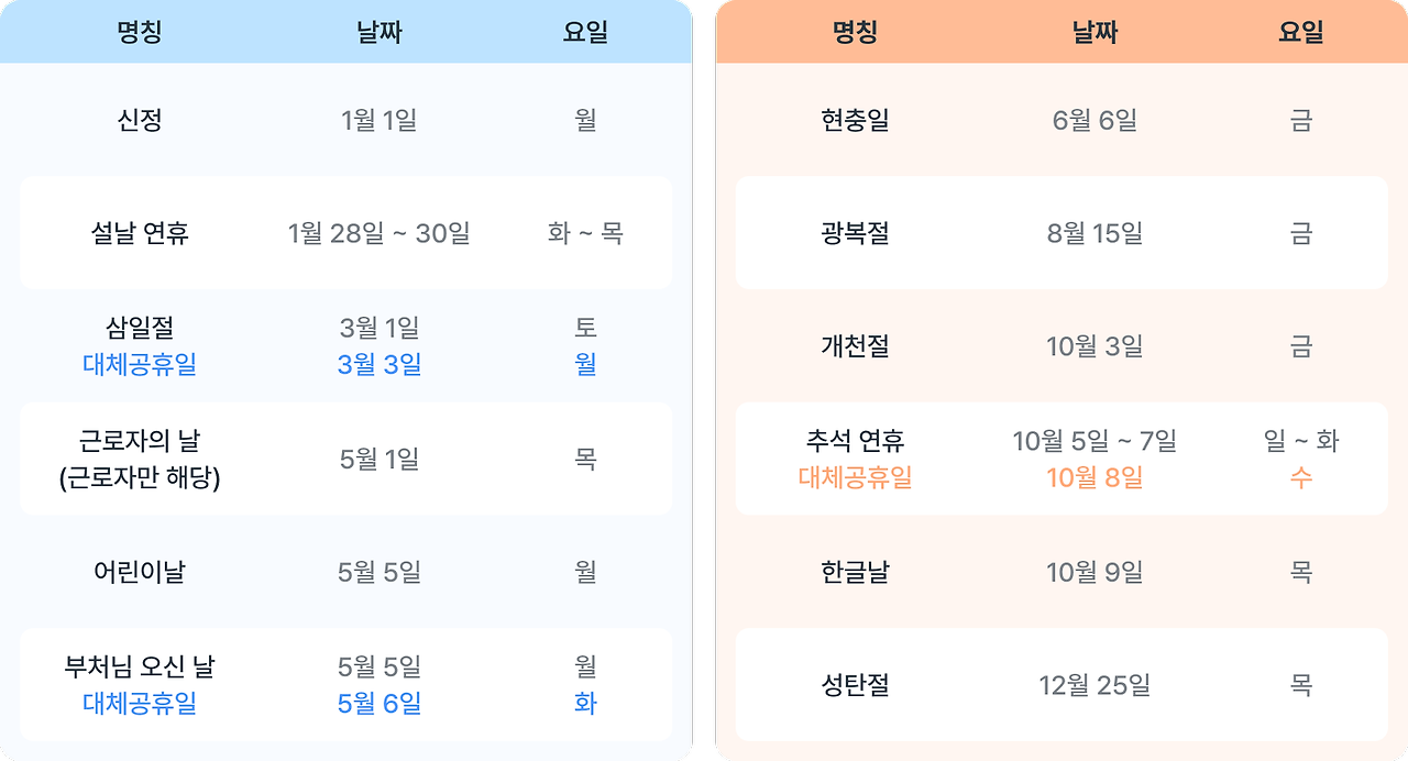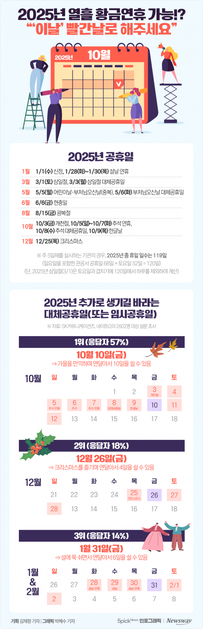 | 2025년 황금연휴 꿈꿔도 될까? 🗓️ 2025년 공휴일 총정리 & 추가 희망 공휴일 설문 결과 (0) | 2025.03.18 |