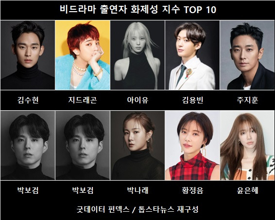 | 김수현, 압도적 화제성으로 비드라마 출연자 1위 석권! 👑 '굿데이' 효과 톡톡! G-DRAGON, 아이유, 박보검 등 톱스타 총출동! 🔥 (4) | 2025.03.18 |