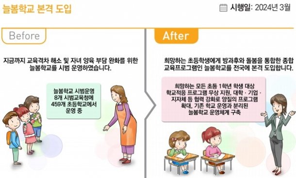 초등학교 입학 전후의 아동에게 교육과 돌봄 서비스를 제공하는 정책으로, 모든 초등학교에서 실시돼요. 아이를 키우는 부모님들에게는 정말 좋은 소식이죠?