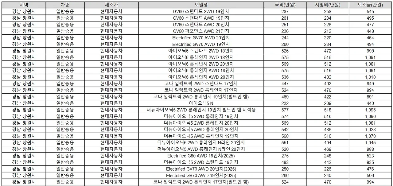 | 아이오닉6 | 현대 | 아이오닉6 | 500만 원 | 100만 원 | 600만 원 |