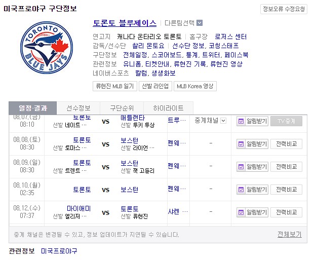 다음 경기는 8월 12일로 잡혀있네요. 8월 12일에도 승리의 소식을 기대해보겠습니다.