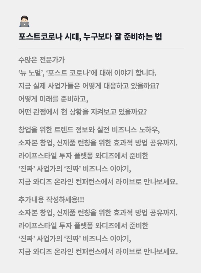 | [이벤터스] 와디즈 온라인 컨퍼런스 참여후기 (3) | 2020.07.30 |