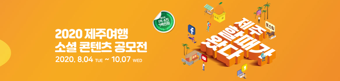 | 2020 제주여행 소셜 콘텐츠 공모전 <제주할때가왔다> (0) | 2020.08.10 |